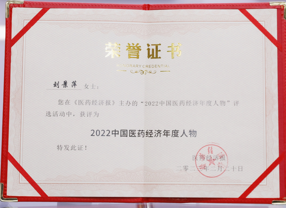 尊龙官方网站药业集团董事长刘景萍当选“2022中国医药经济年度人物”